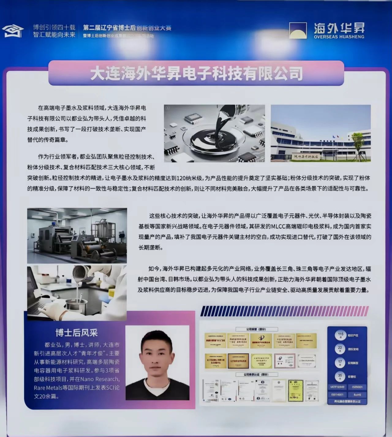 大連海外華昇電子科技有限公司(簡稱“海外華昇”)于2016年4月成立,注冊資本7940萬元,是一家專業(yè)從事高精度、微米/納米級電子漿料研發(fā)、生產(chǎn)和銷售的高新技術(shù)企業(yè)。目前,海外華昇已完成實際投資超2億元,建成大連總公司、無錫子公司、東莞分公司、上海子公司(上海正銀)、嘉興子公司(浙江納沛)、肇慶子公司、淮北子公司和日本子公司,擁有國際領(lǐng)先的電子漿料精益生產(chǎn)線,設(shè)備400臺(套),設(shè)計年產(chǎn)能1000噸,設(shè)計產(chǎn)值30億元。